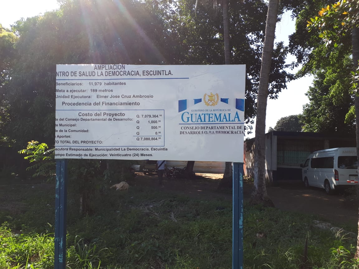 Se supervisa el proyecto denominado Ampliacion Centro de Salud La Democracia Escuintla, con el objetivo de beeficiar a 11,979 habitantes, ejecutando 189 metros; teniendo un plazo de 24 meses para ejecutar.